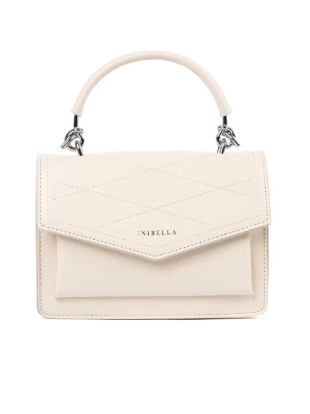 Jasnobeżowa mała torebka damska z rączką i paskiem