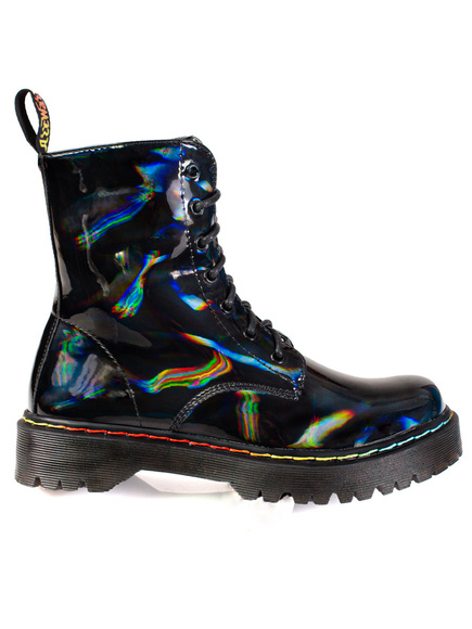 Black Lace-Up Holographic Boots
