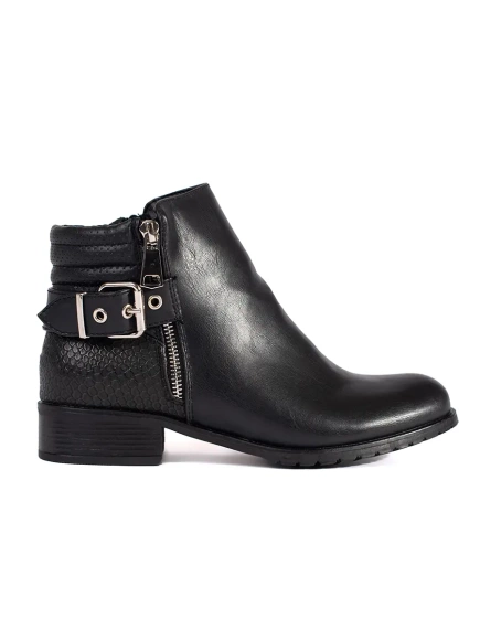 Chic Black Ankle Boots with Decorative Zipper and Buckle