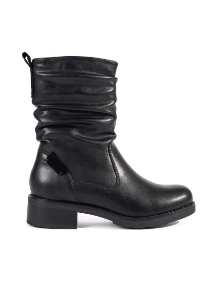 Black Leather Ankle Boots with Low Wedge and Ruched Shaft by Sergio Leone