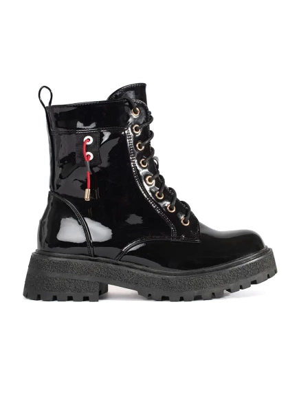 Glossy Lace-Up Ankle Boots