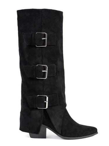 Cozy Black Fur-Lined Winter Boots with Thick Soles