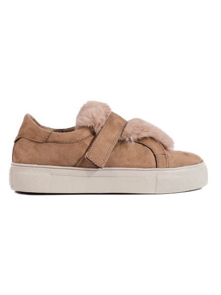 Beige Suede Sneakers with Faux Fur