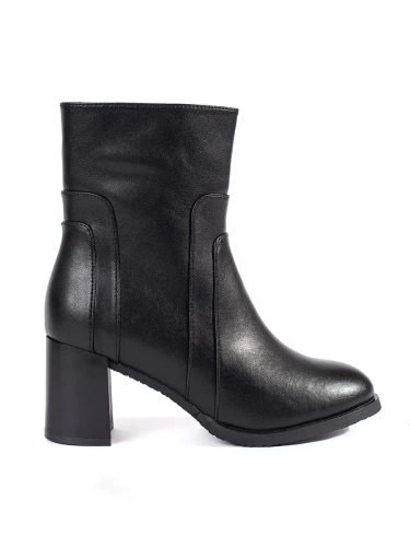 Czarne skórzane botki damskie na obcasie z ozdobną klamrą Sergio Leone