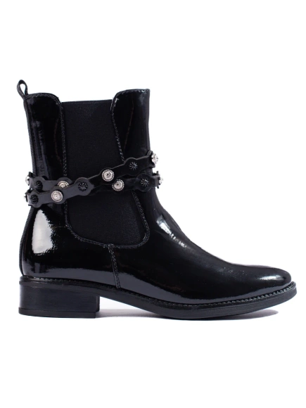Czarne kozaki damskie z łańcuszkiem ze skóry ekologicznej