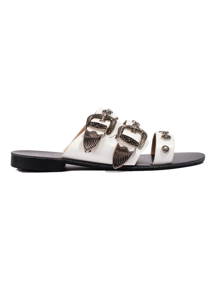 Stylowe klapki ze sprzączkami białe