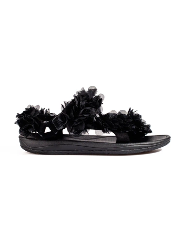 Czarne klapki ze złota ozdobą