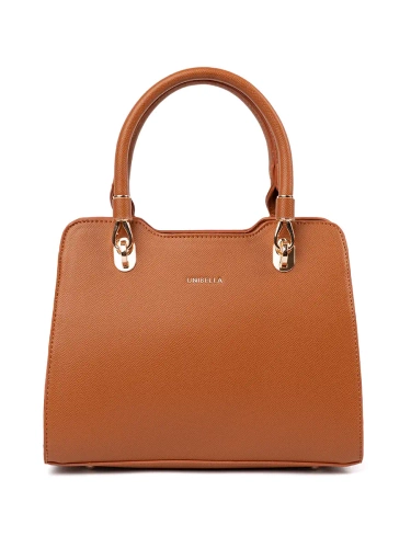Jasnobrązowa średnia torebka z ozdobną chustą