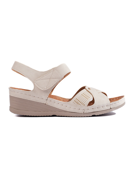 Sandały damskie na koturnie na rzep beżowe