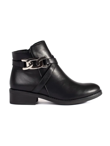 Czarne botki damskie na niskim obcasie z ozdobnym paskiem