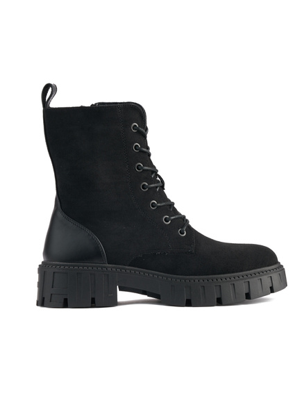 Czarne sznurowane skórzane botki damskie na platformie Sergio Leone