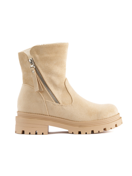 Zamszowe botki damskie z elastyczną cholewką beżowe