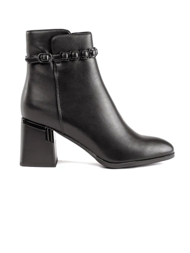Wysokie botki damskie na słupku z lakierowanej skóry ekologicznej