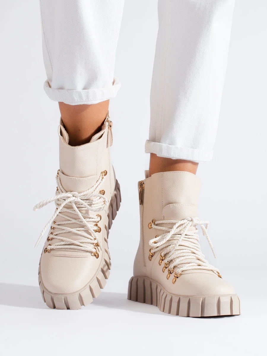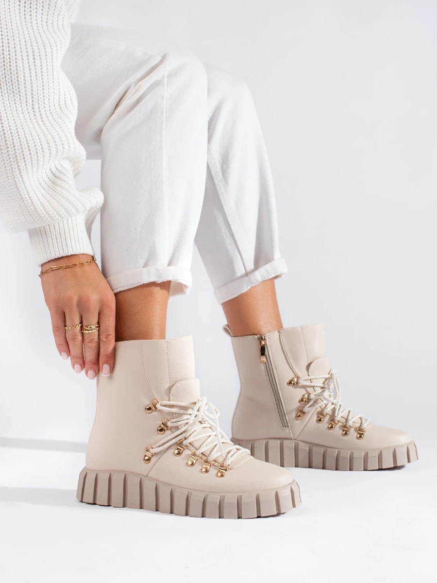Beige Cozy Platform Ankle Boots by Potocki