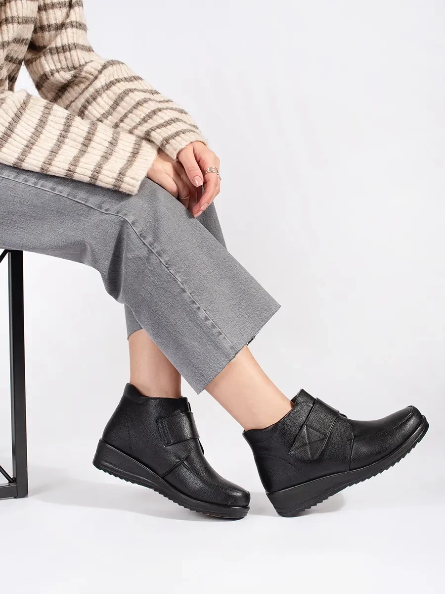 Cozy Black Wedge Ankle Boots