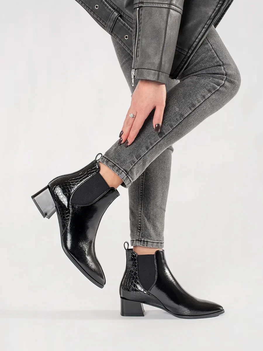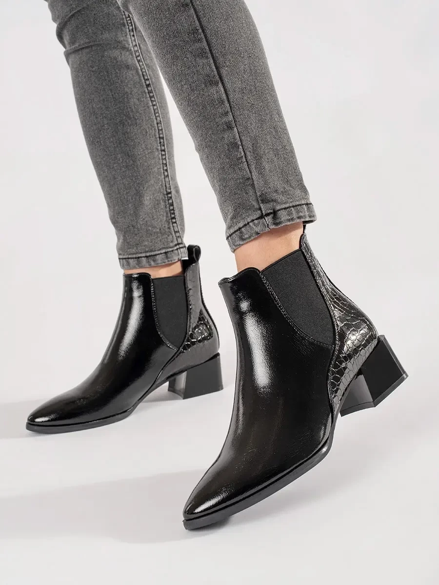 Glossy Black Ankle Boots
