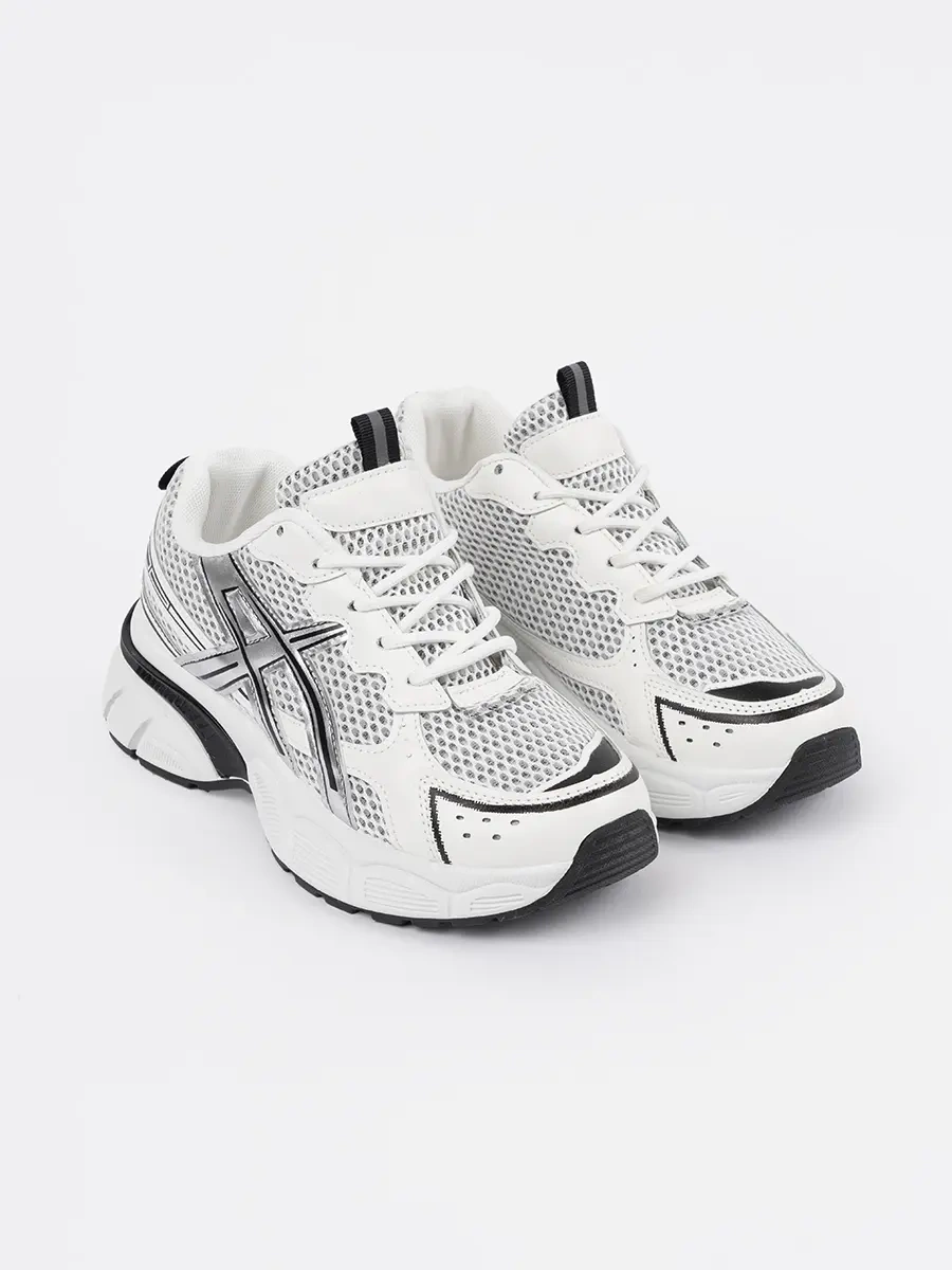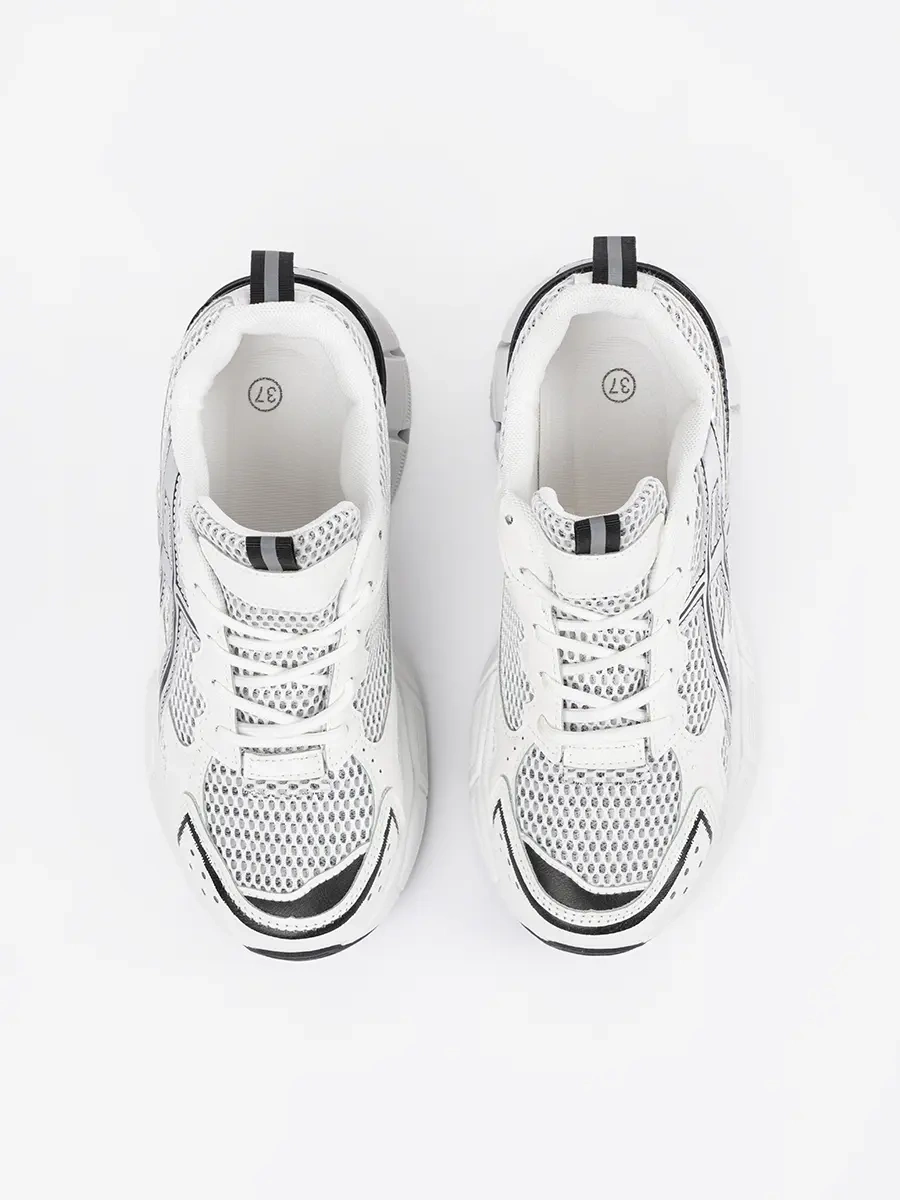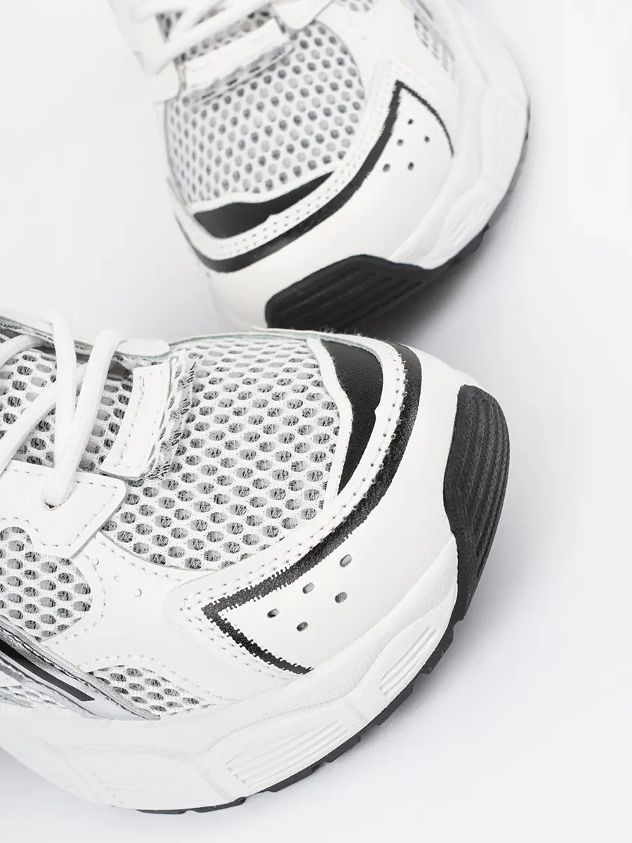 White and Black Mesh Athletic Sneakers