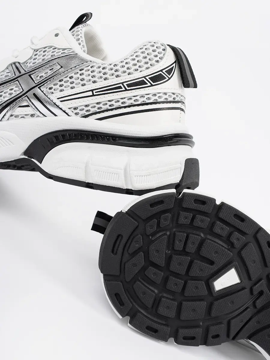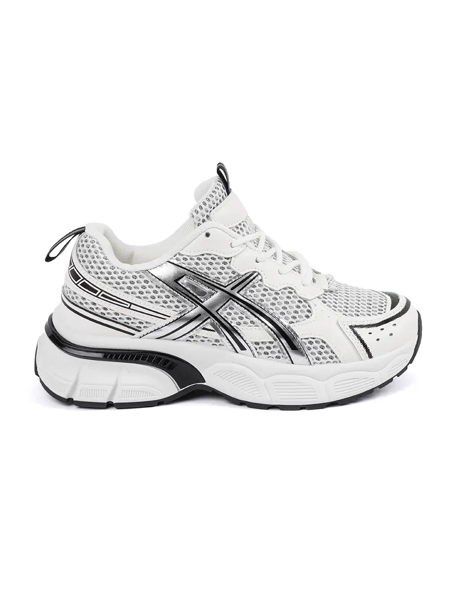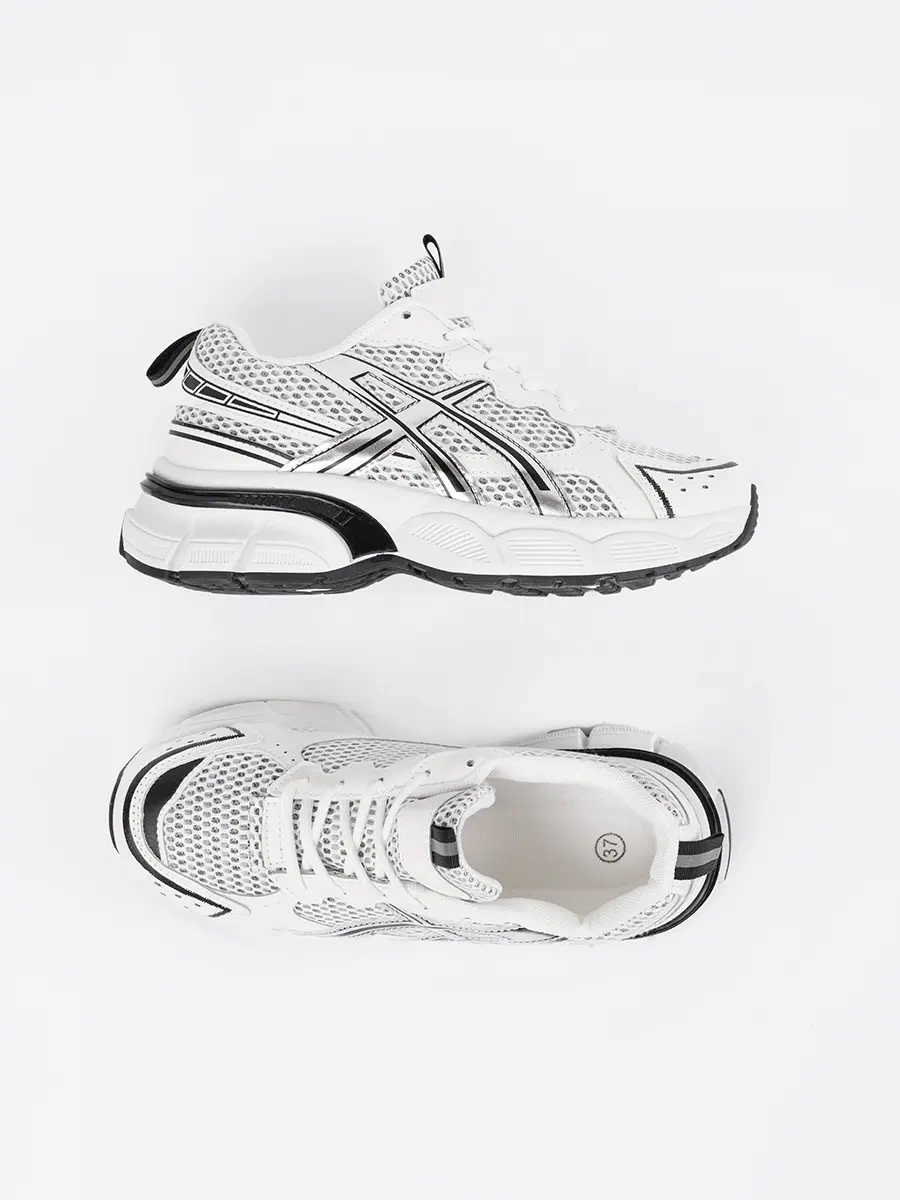 White and Black Mesh Athletic Sneakers