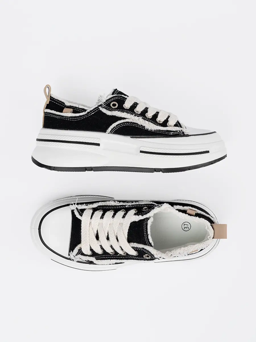 Women's black sneakers with white accents