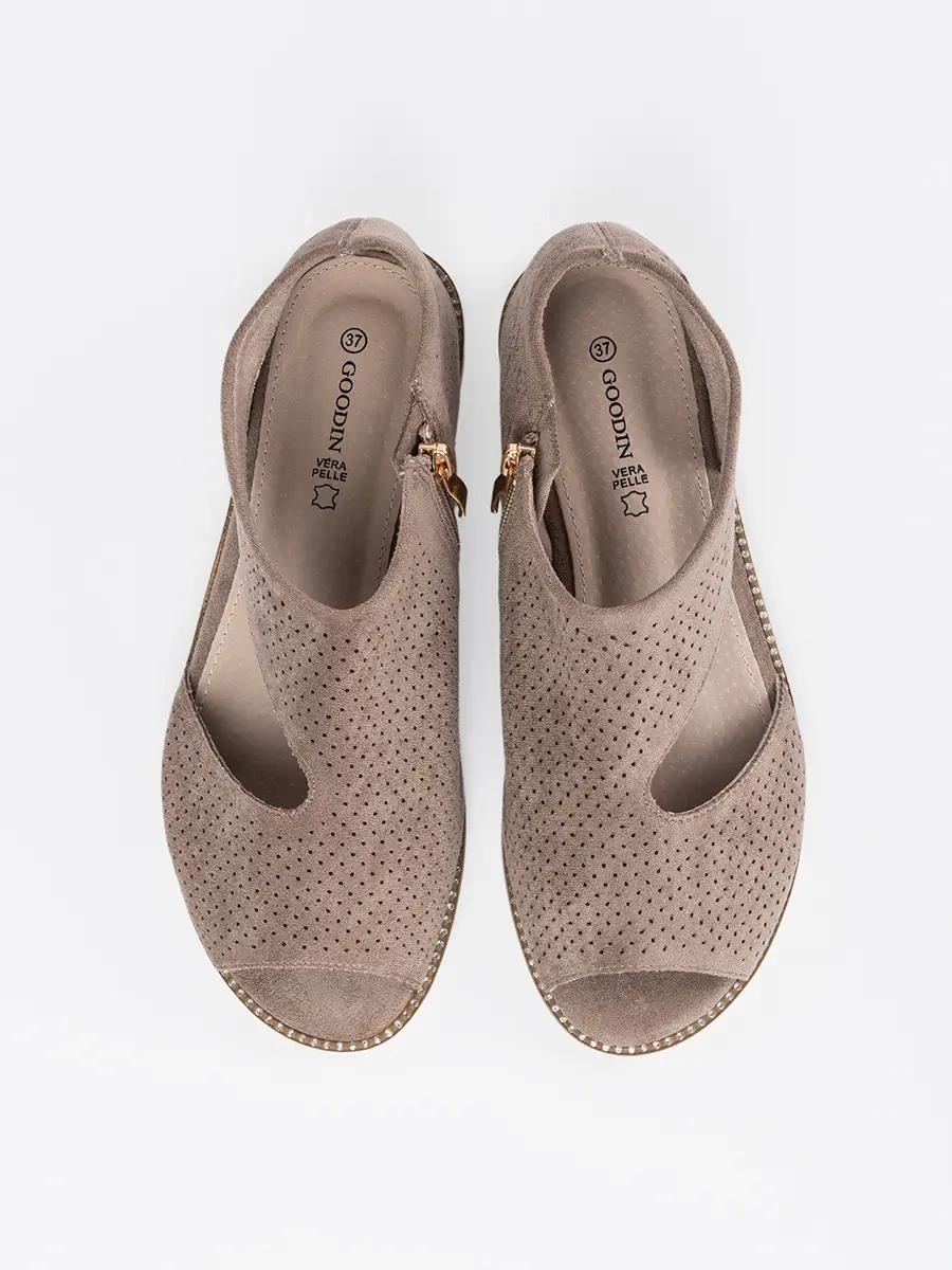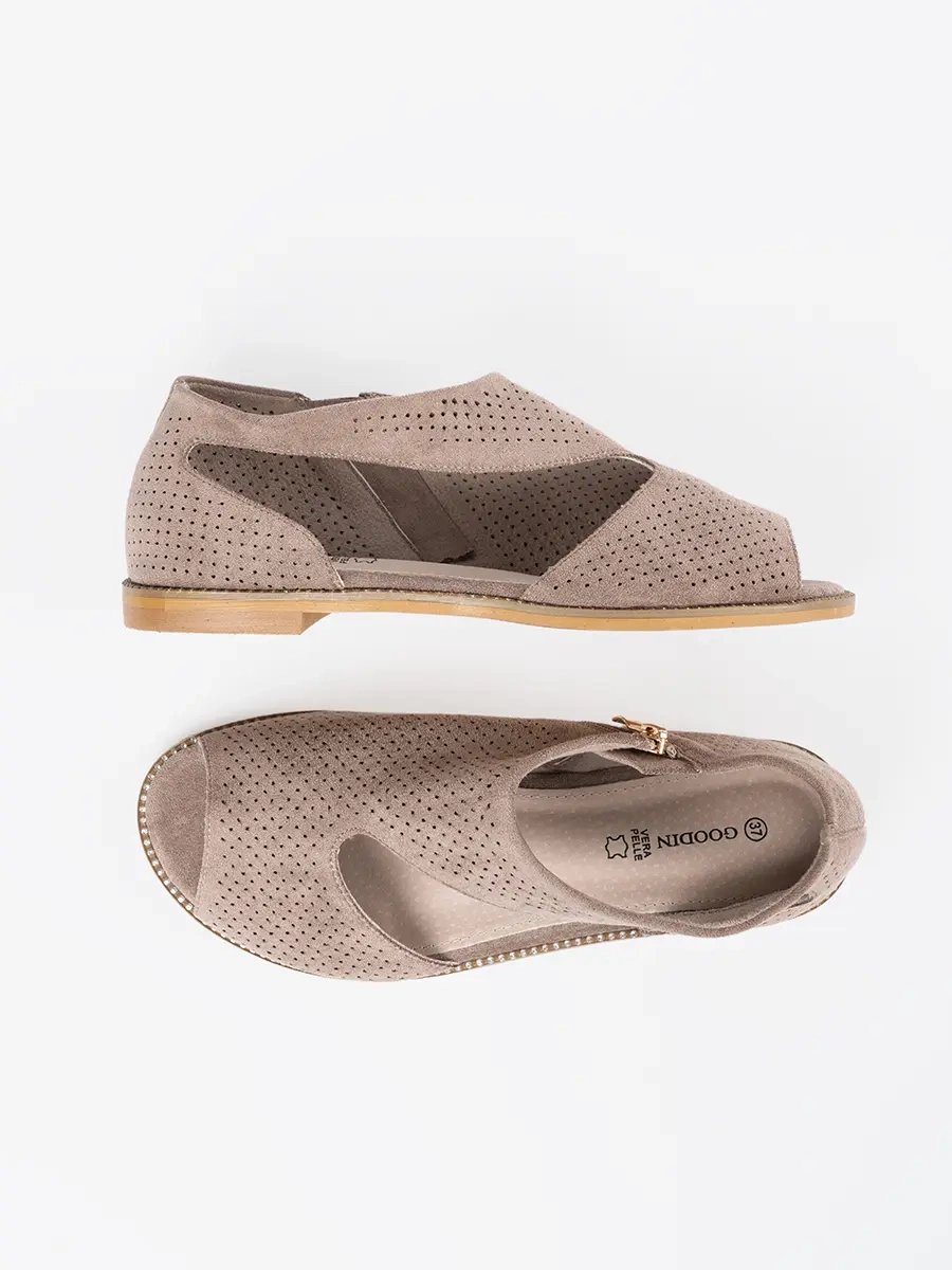 Dark beige flat perforated sandals