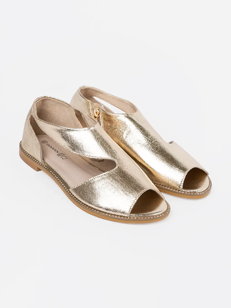 Golden Women's Sandals with Cutouts