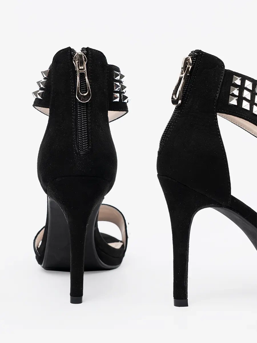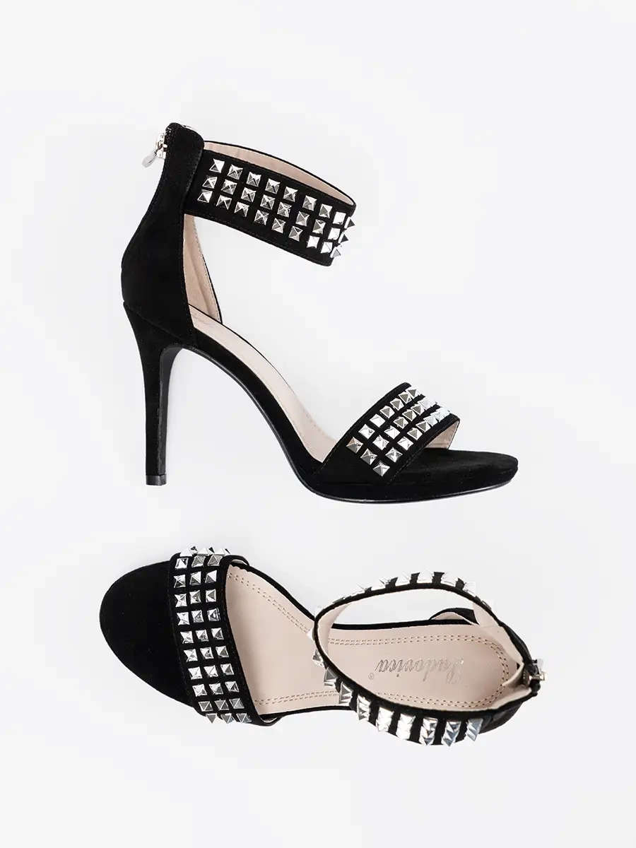 Black stiletto sandals with rhinestones