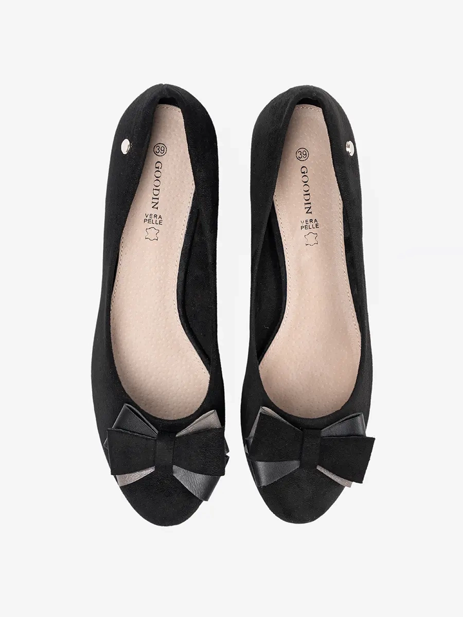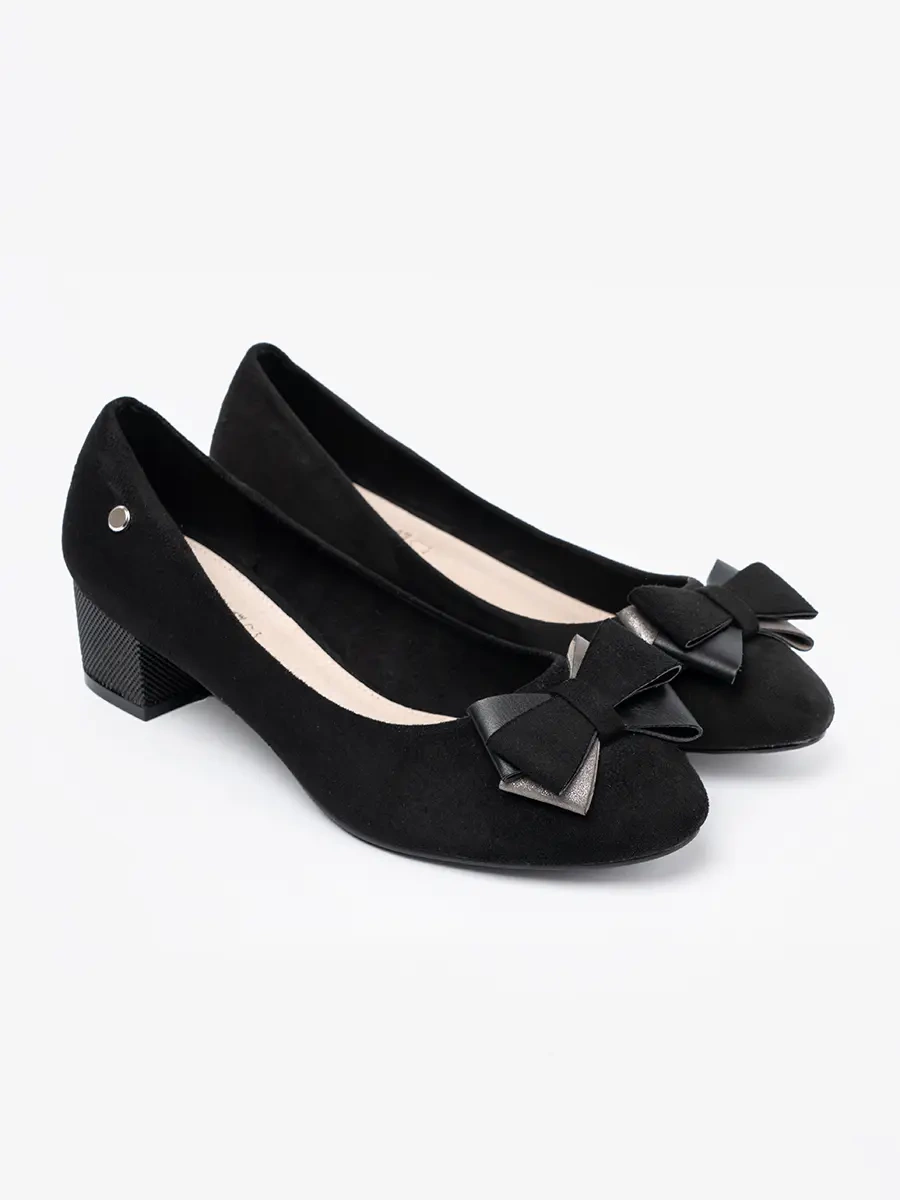 Black pumps with a bow on a pillar heel