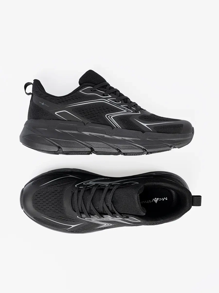 Lightweight Black McArthur Sports Shoes with Thick Soles