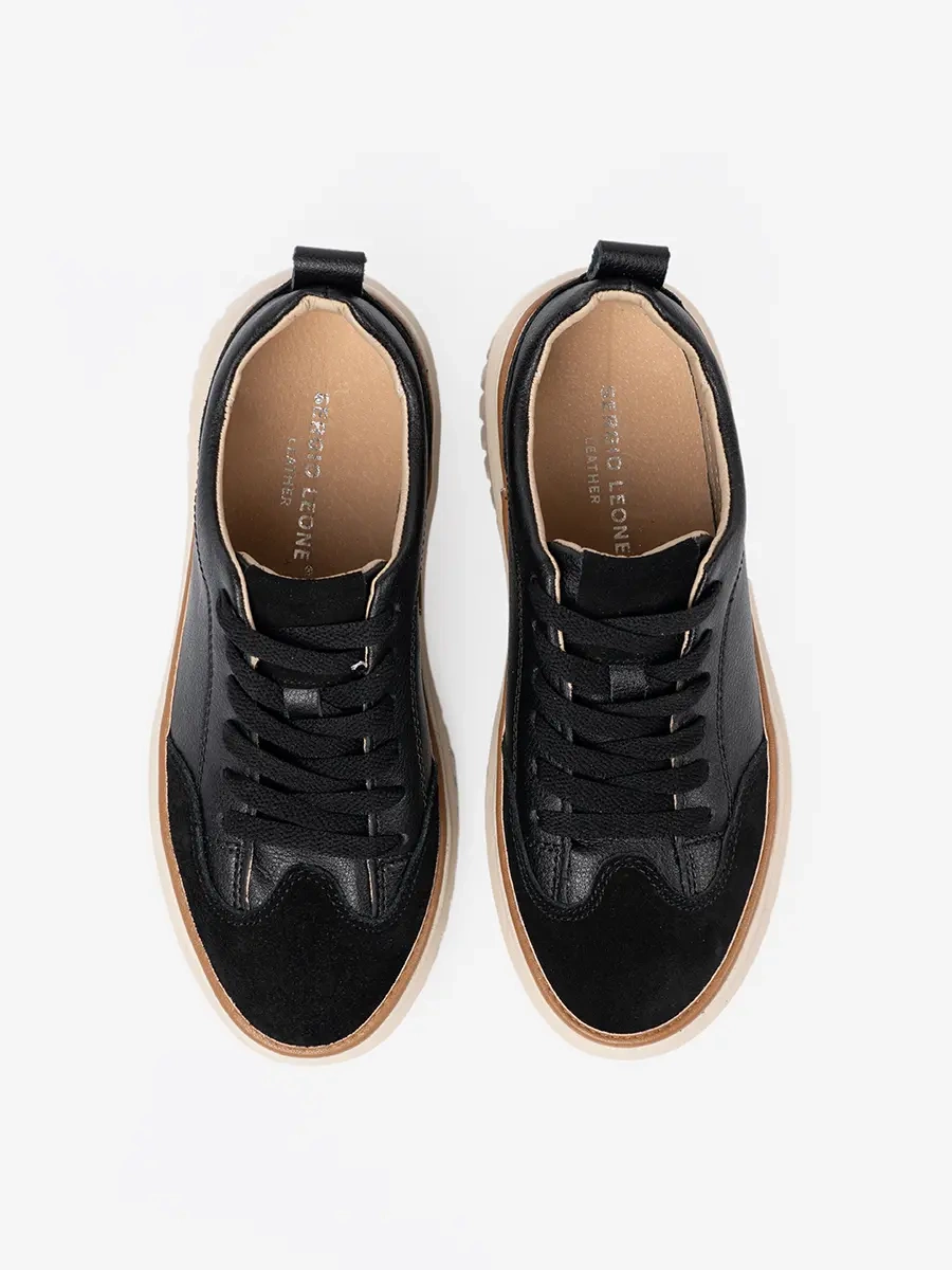 Black Leather Sneakers on Beige Platform by Sergio Leone