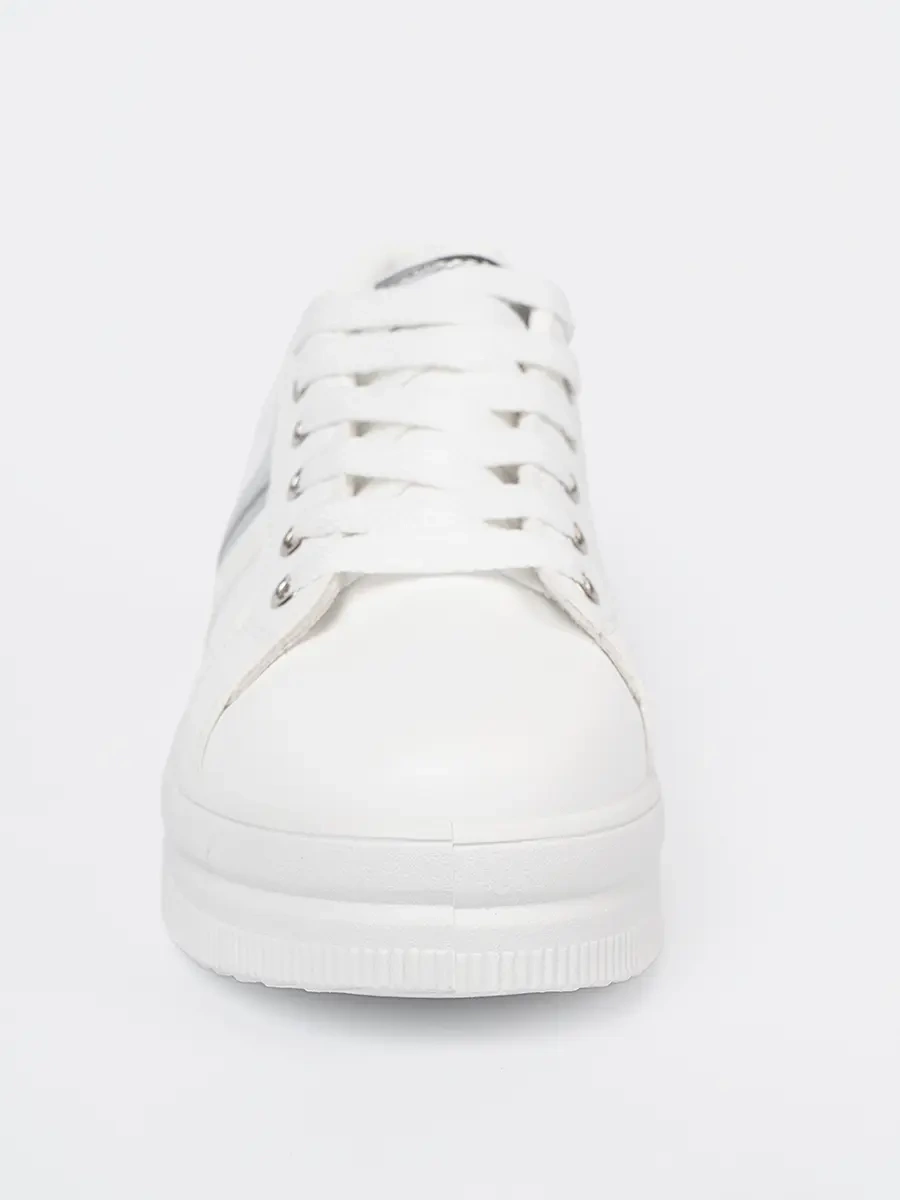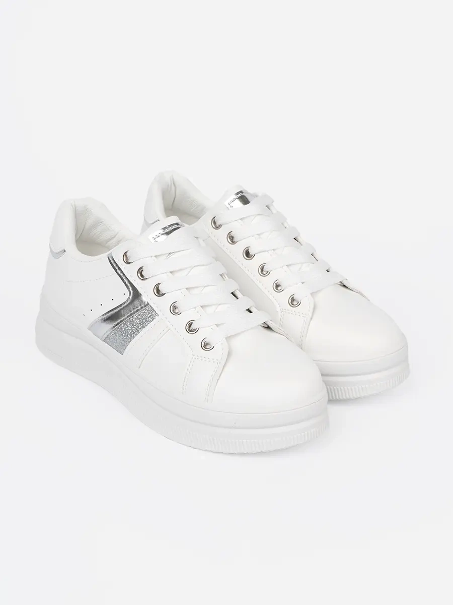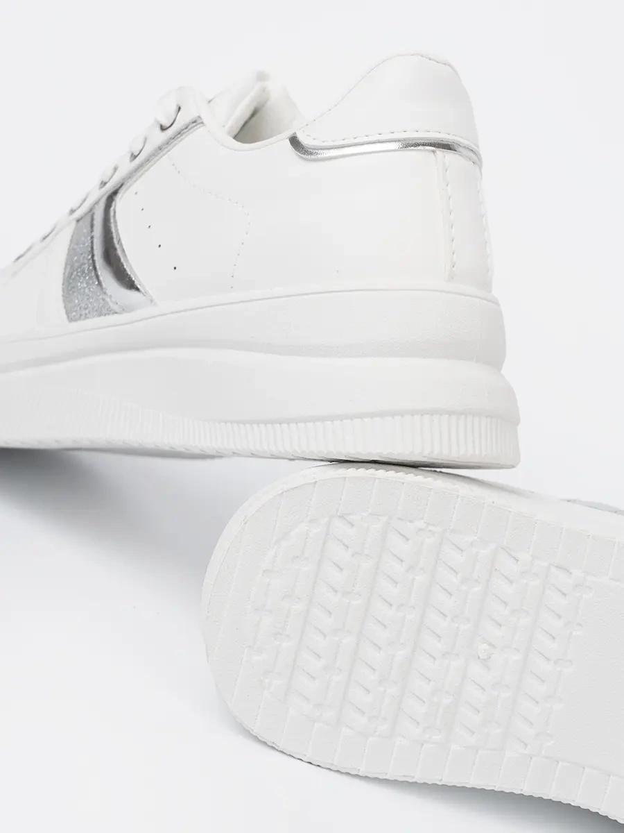 White Sneakers with Metallic Silver Accent