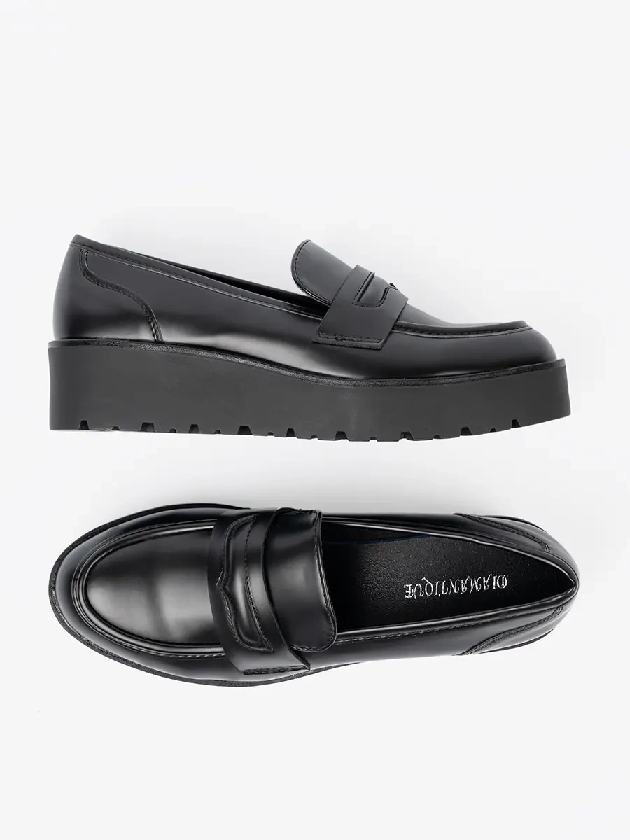 Elegant Black Loafers with Thick Sole