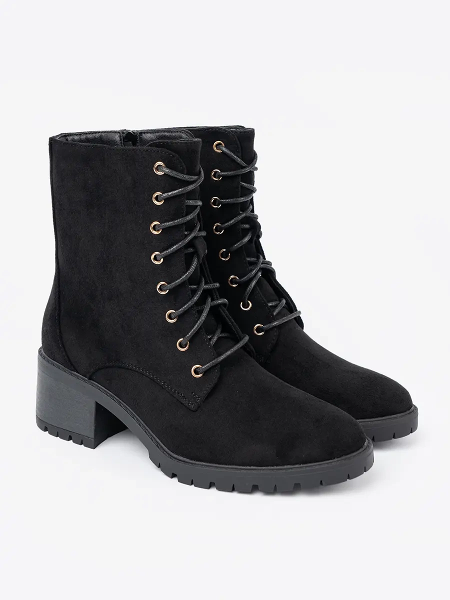 Comfortable Black Booties with Round Toe