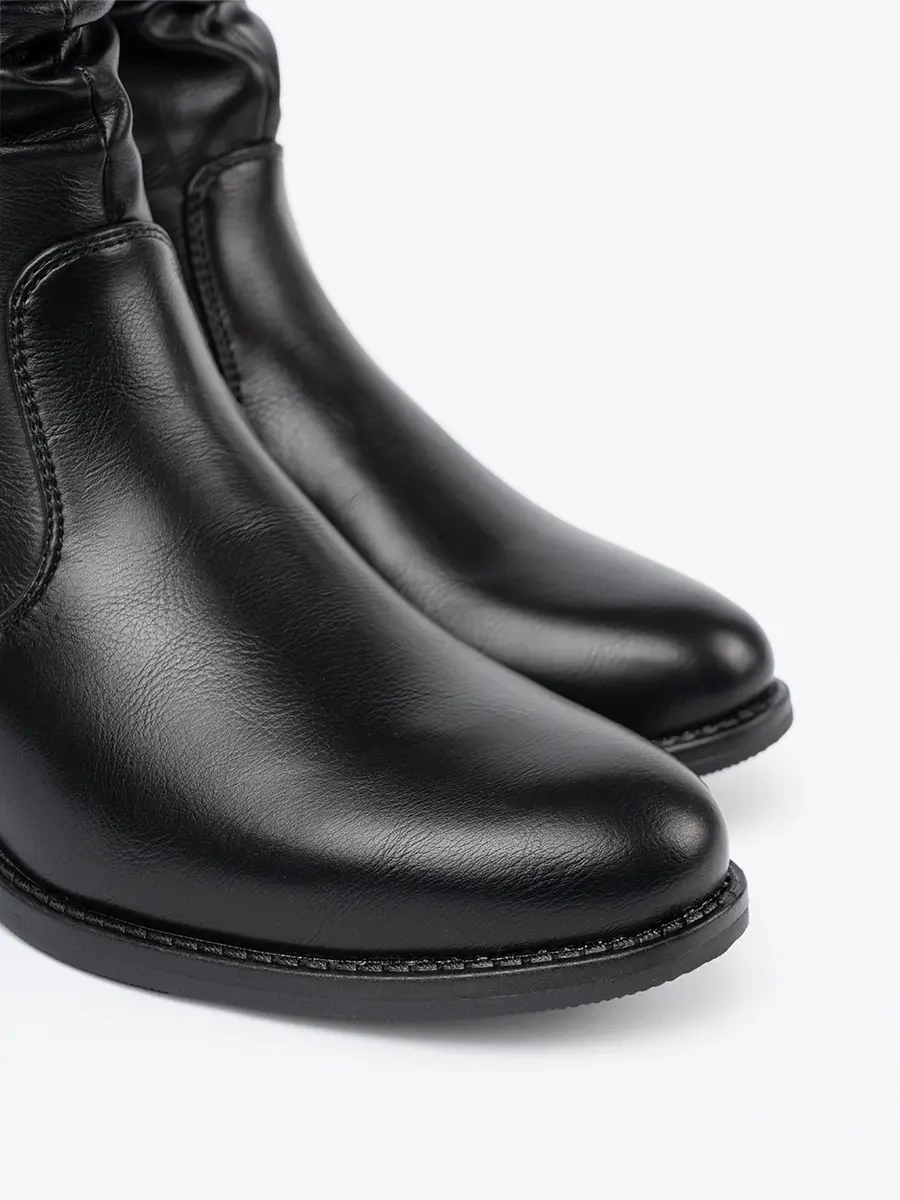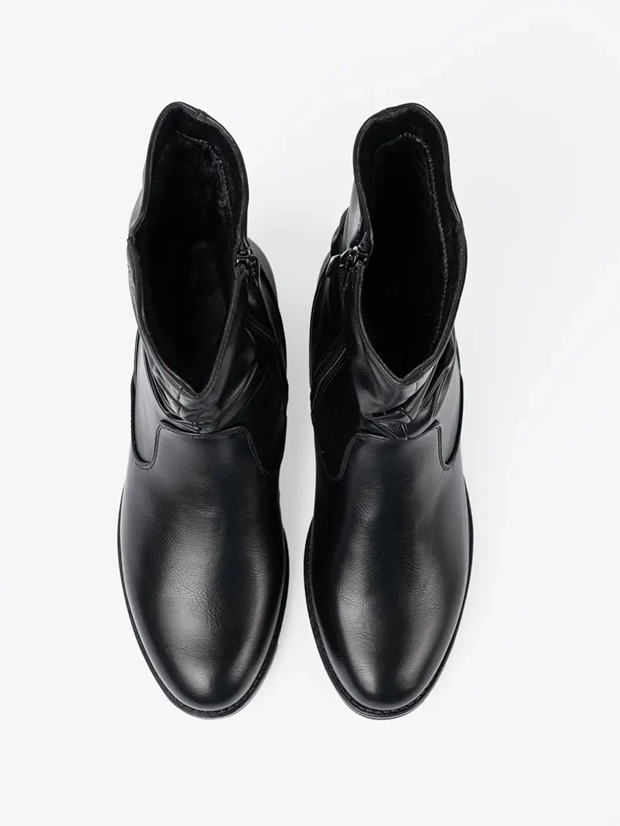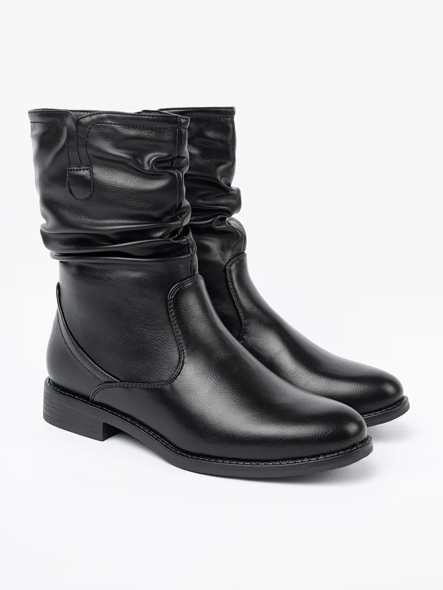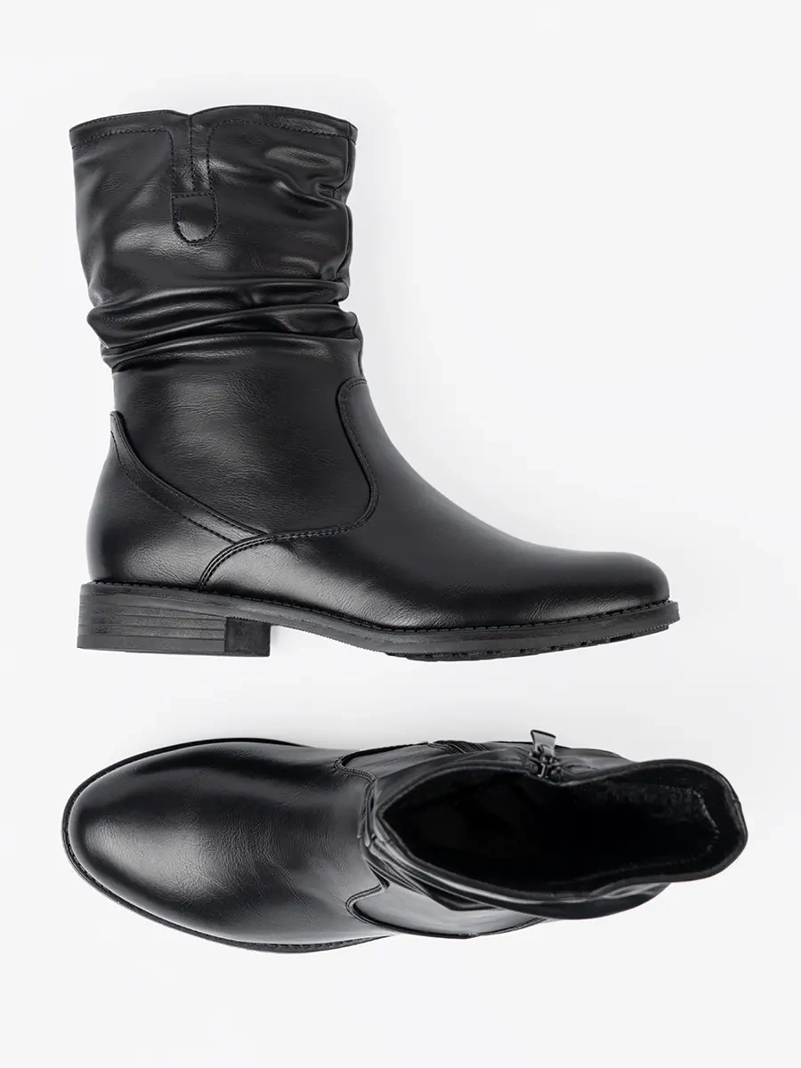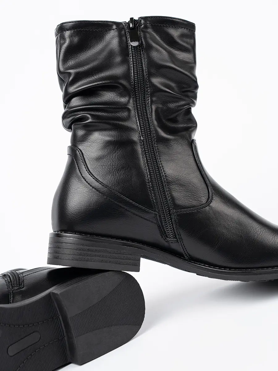 Comfortable black ankle boots with ruching