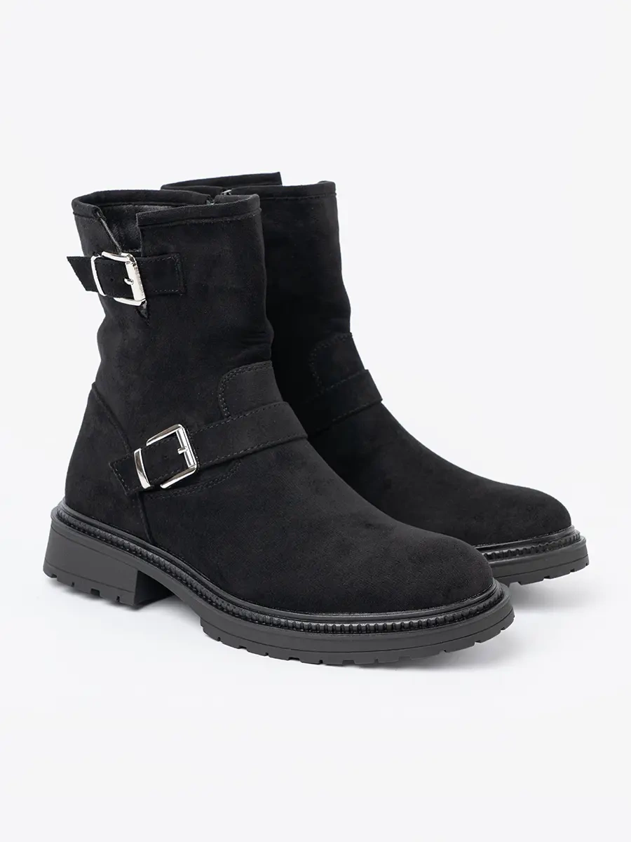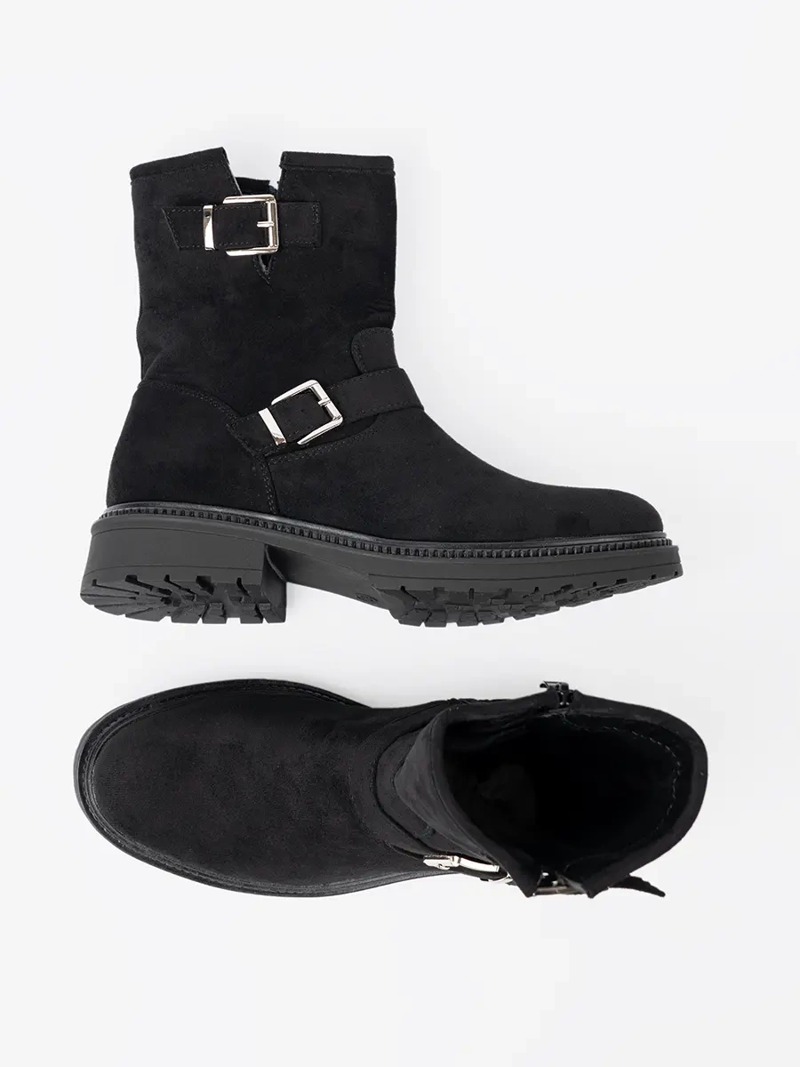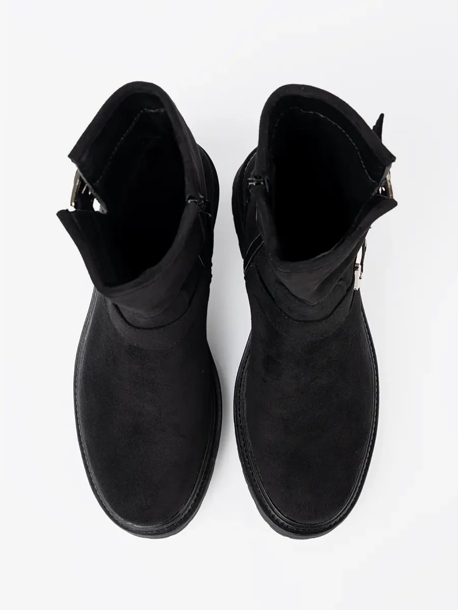 Modern Black Ankle Boots with Silver Buckles