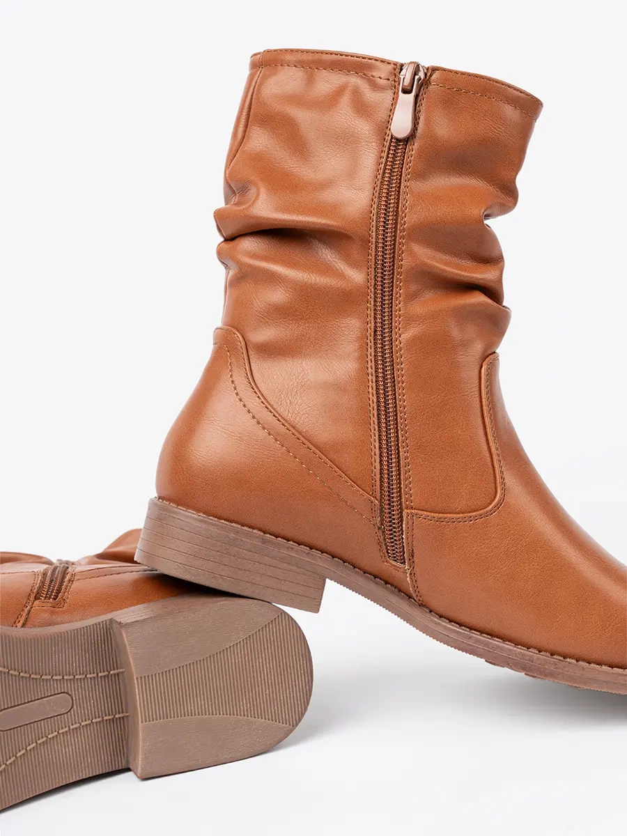 Comfortable Caramel Ankle Boots with Ruching