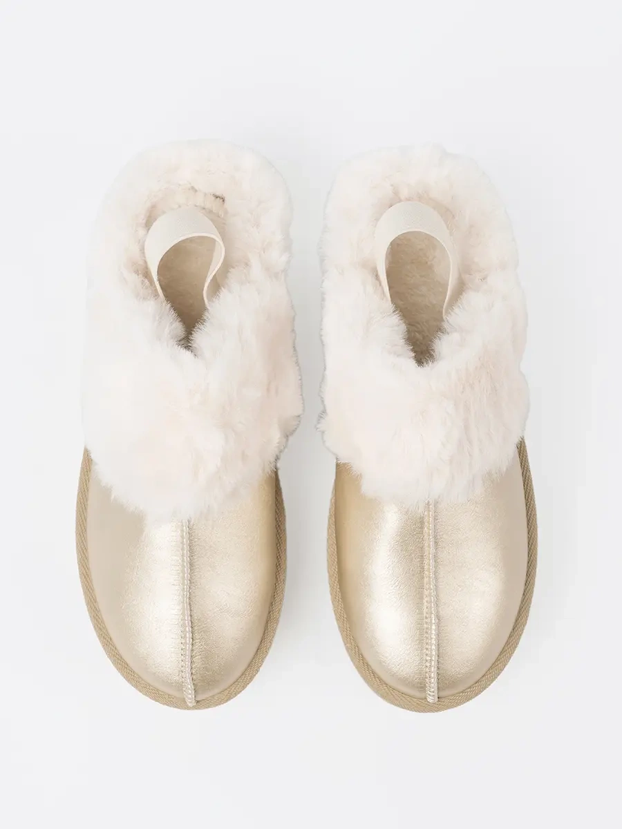 Golden snow boots style shoes with white fur