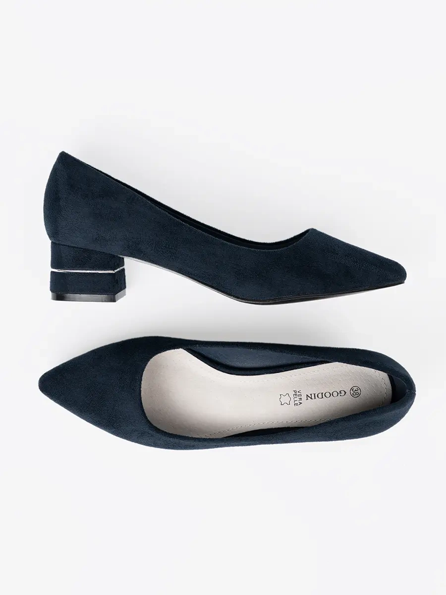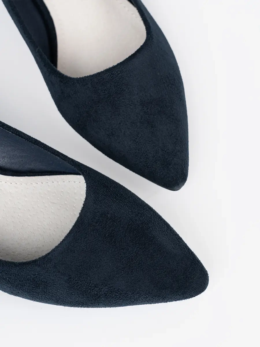 Czółenka damskie z ozdobnym paskiem w kolorze granatowym
