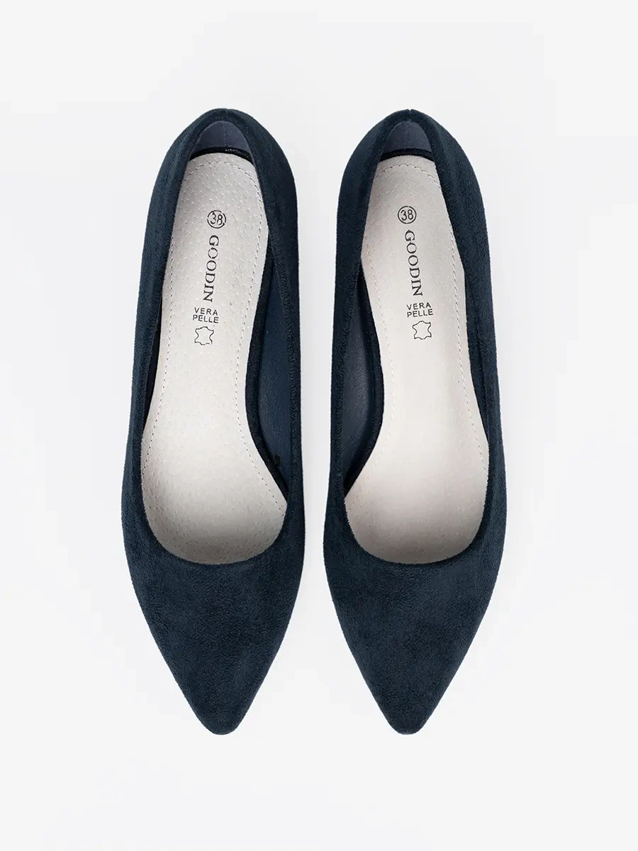 Nasze granatowe czółenka zostały stworzone z myślą o kobietach, które cenią sobie wysoką jakość i styl. Wykonane z ekologicznej skóry zamszowej, nie tylko zachwycają eleganckim wyglądem, ale także gwarantują trwałość na lata. Granatowy kolor dodaje głębi i jest idealnym tłem dla ozdobnego paska, który stanowi wyjątkowy akcent.