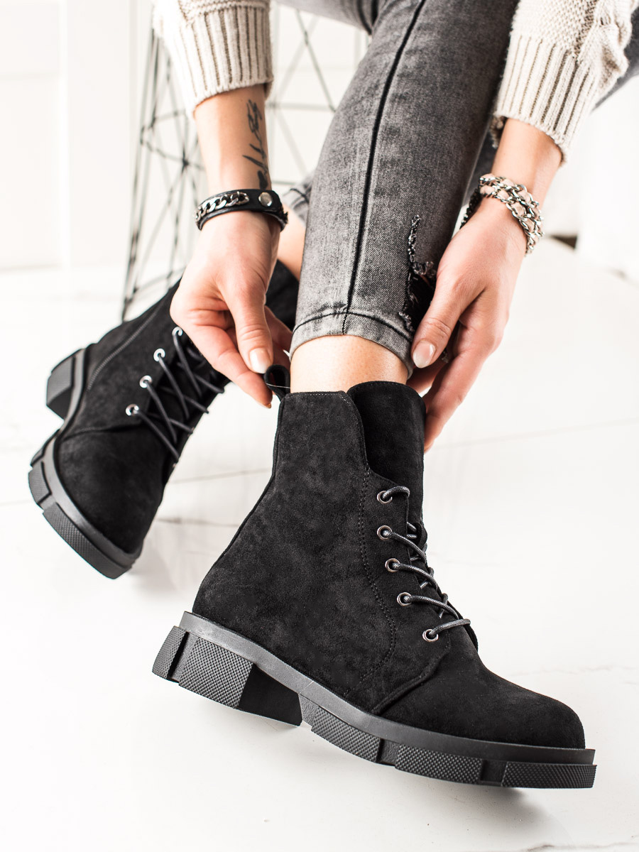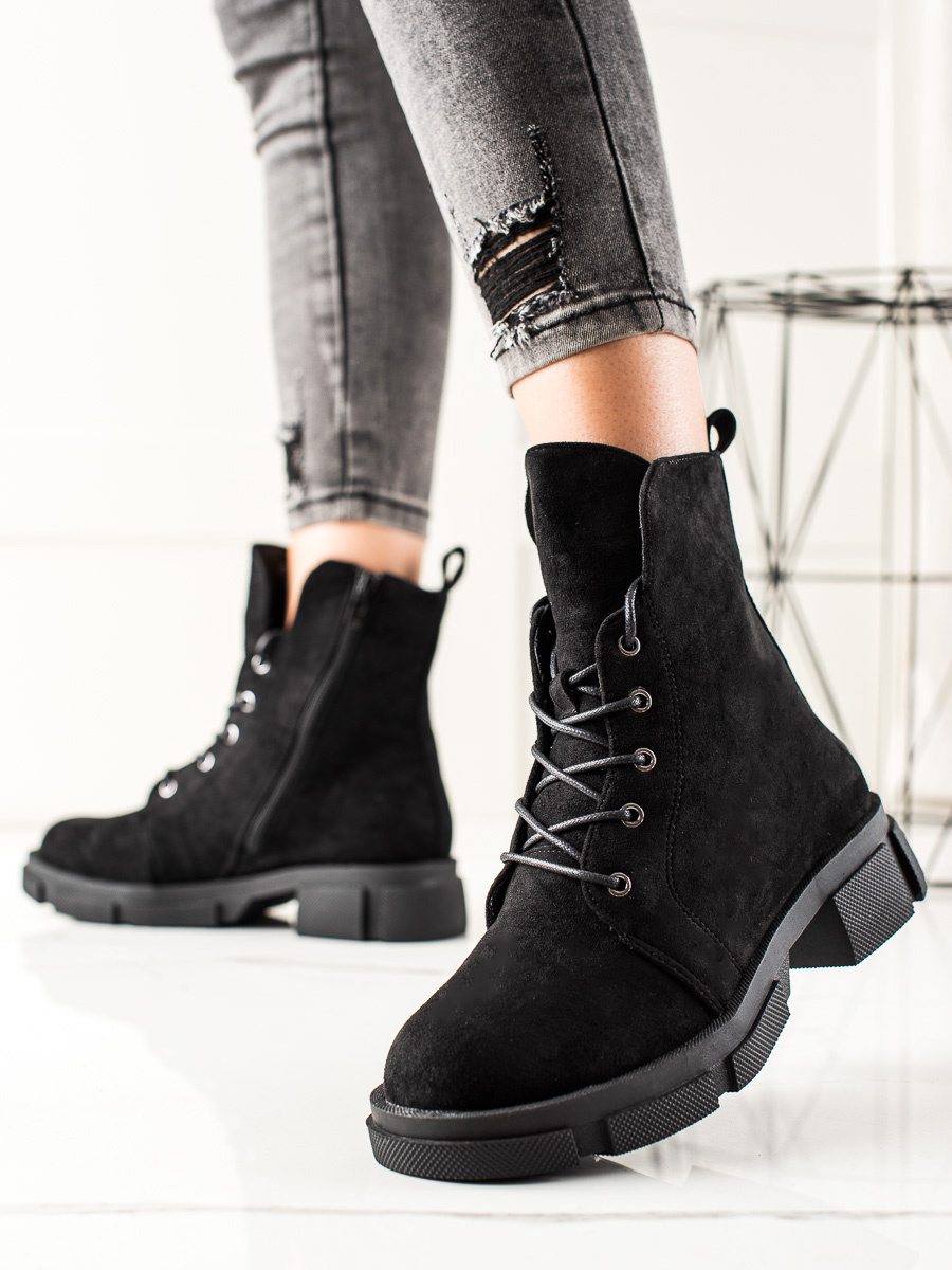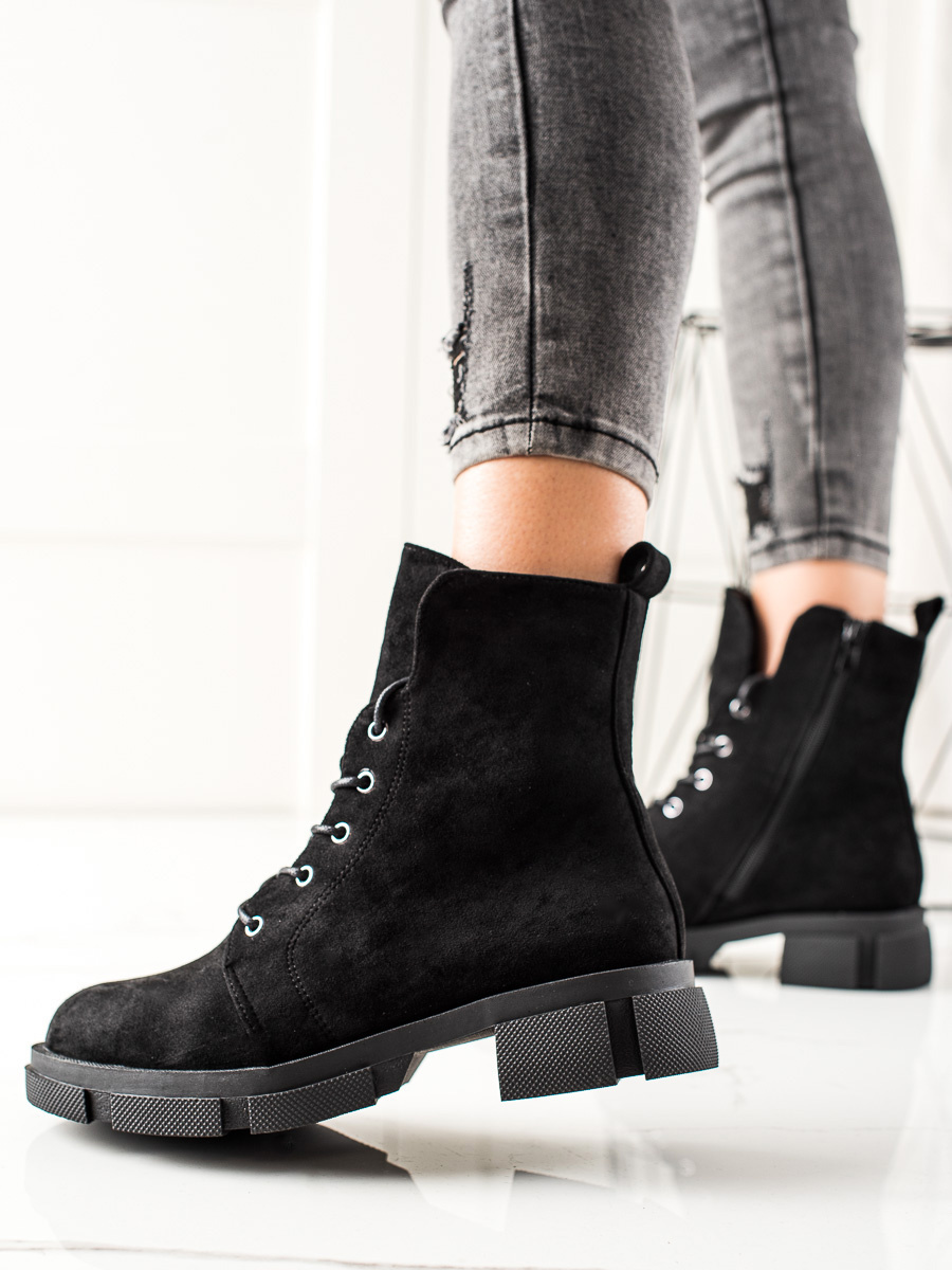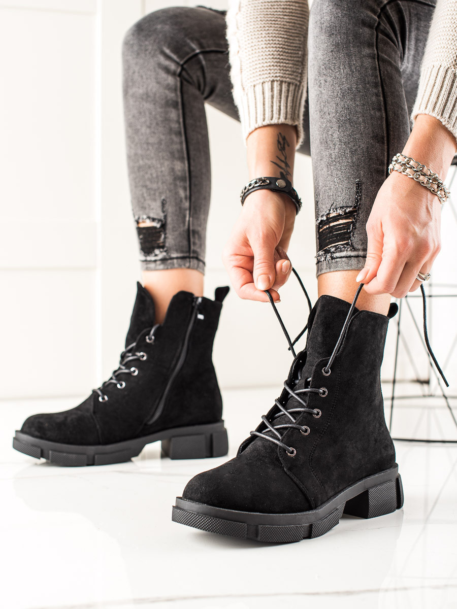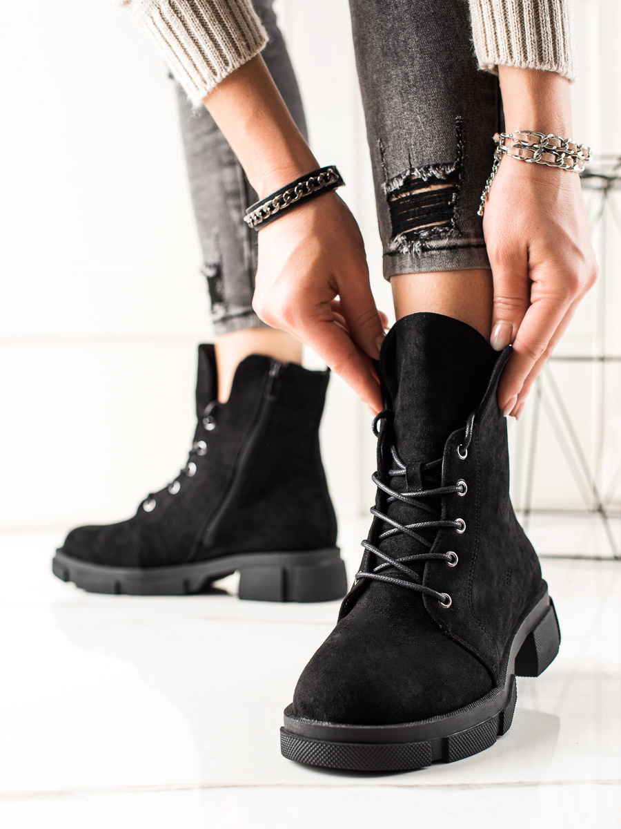 Nasze workery damskie zostały stworzone z myślą o kobietach ceniących luksus i komfort. Wykonane z wysokiej jakości ekologicznej skóry zamszowej, zapewniają nie tylko oszałamiający wygląd, ale także trwałość na lata. Czarny kolor dodaje charakteru i pasuje do różnorodnych stylizacji, zarówno eleganckich, jak i casualowych.