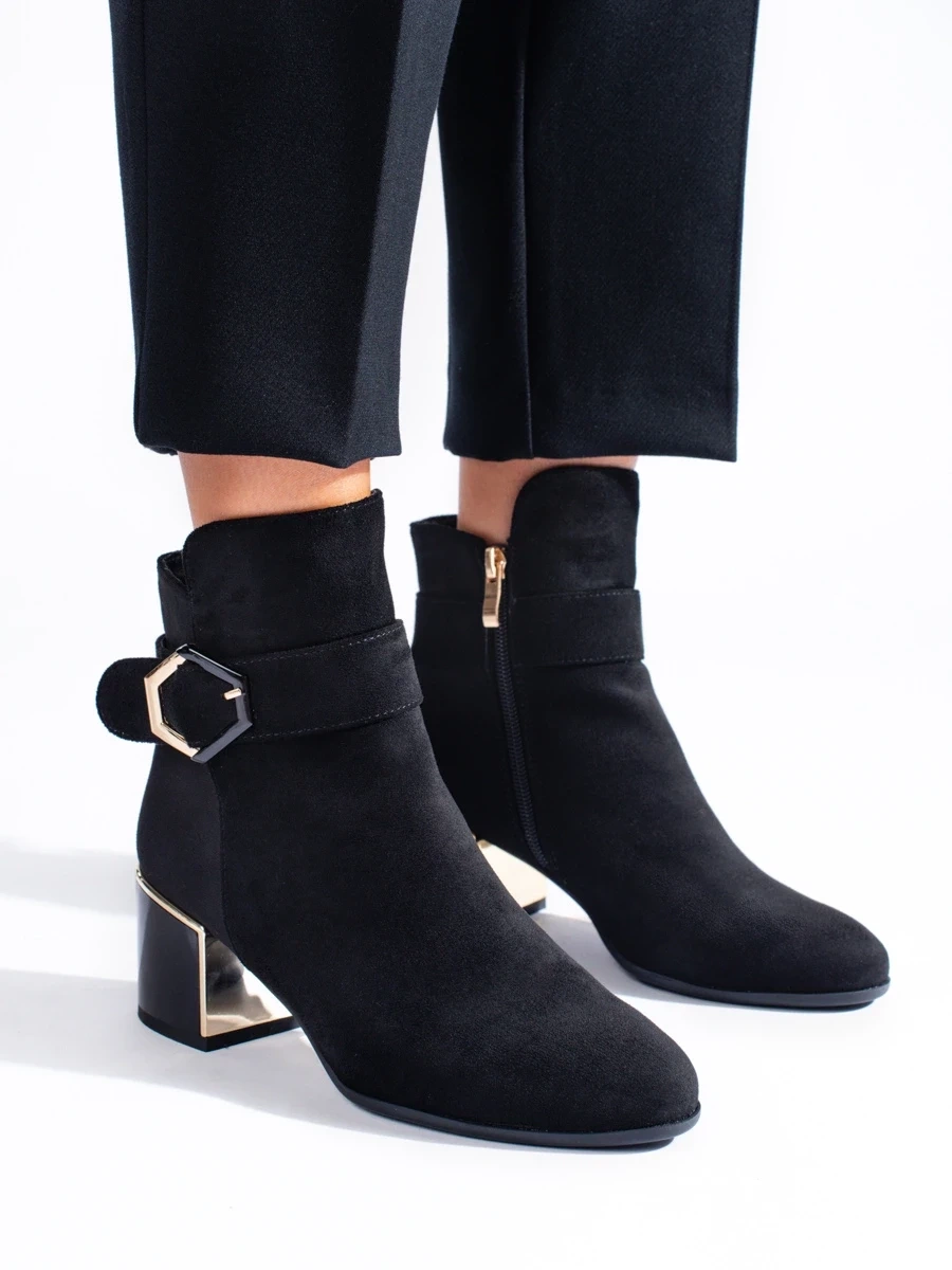Eleganckie botki damskie na niskim słupku z zamszu ekologicznego