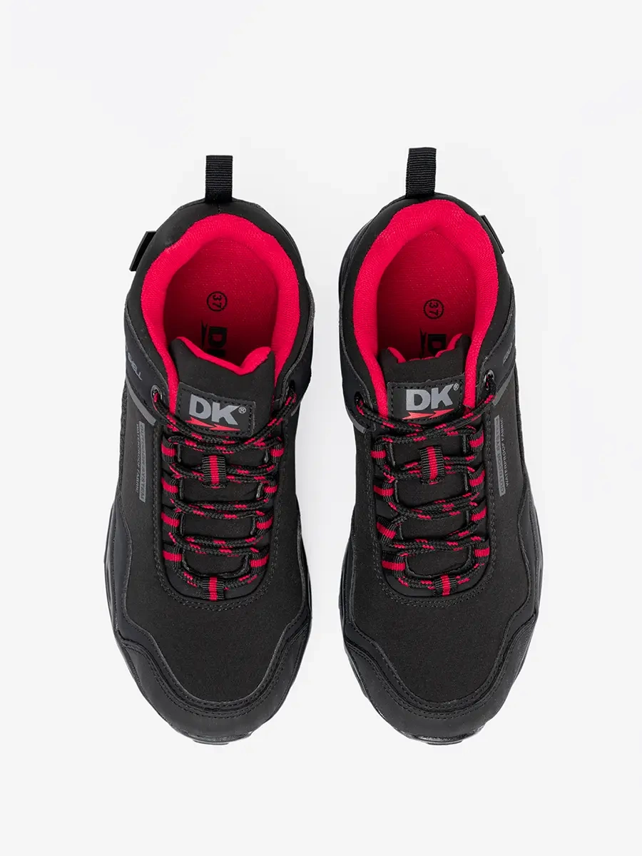 Buty trekkingowe damskie DK Waterproof czarne z czerwonymi wstawkami