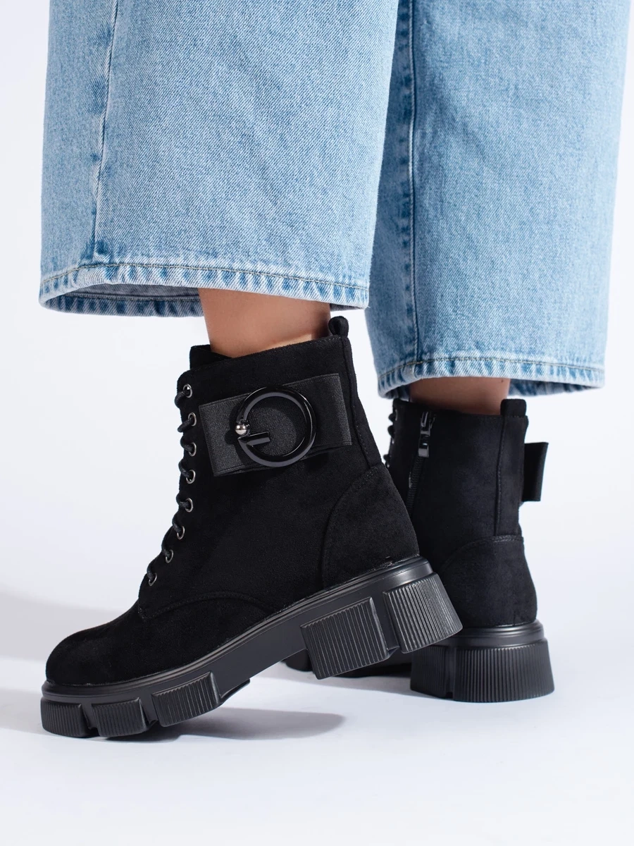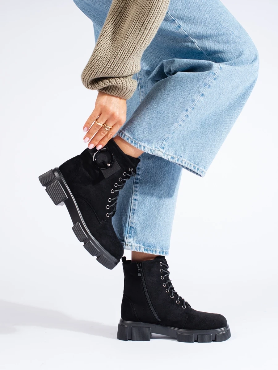 Czarne workery damskie z ekologicznego zamszu – styl i wygoda na co dzień
