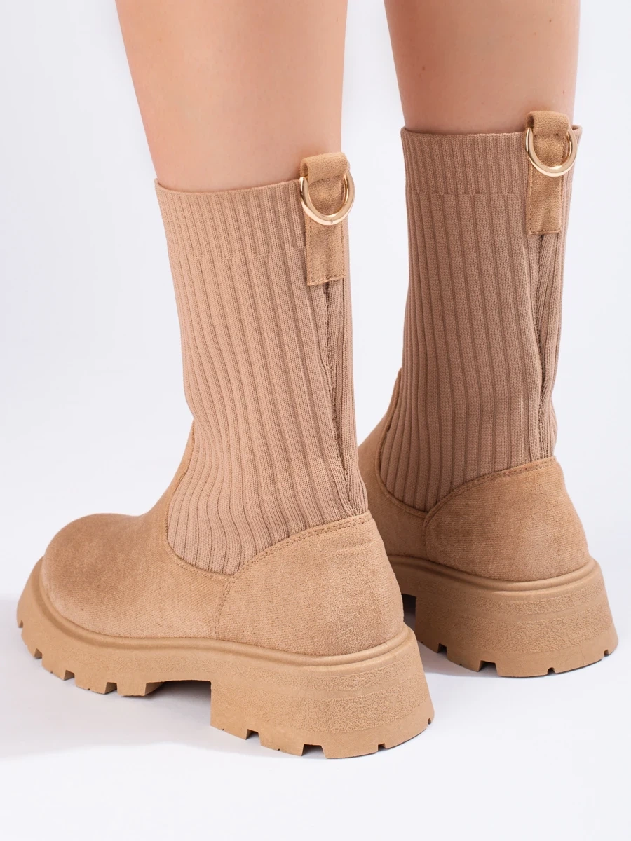 Opinie o Zamszowe botki damskie z elastyczną cholewką beżowe