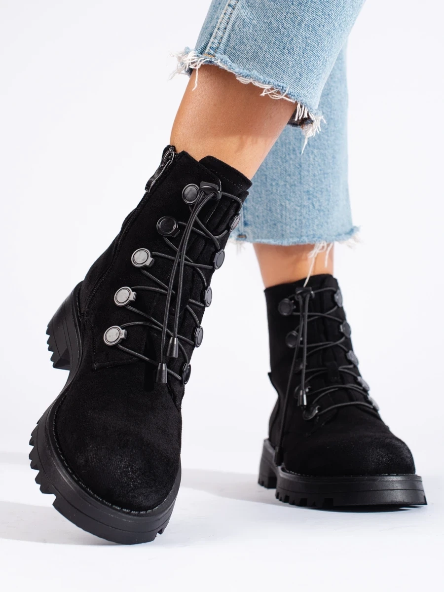 Zamszowe botki damskie czarne - elegancja i wygoda na co dzień