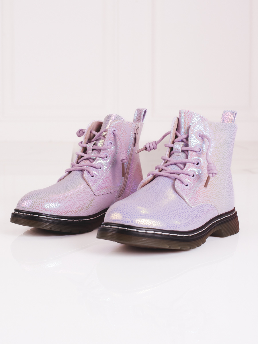 Botki dziewczęce z połyskiem różowe