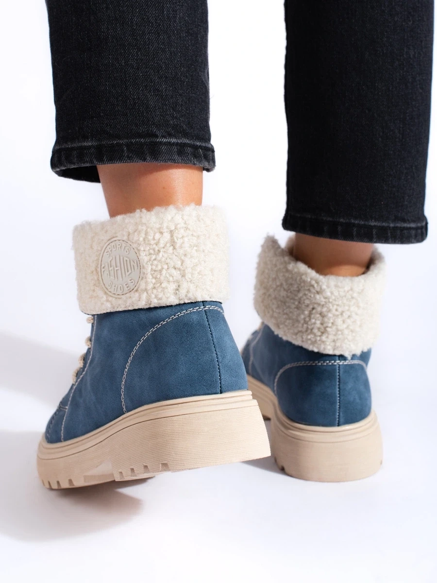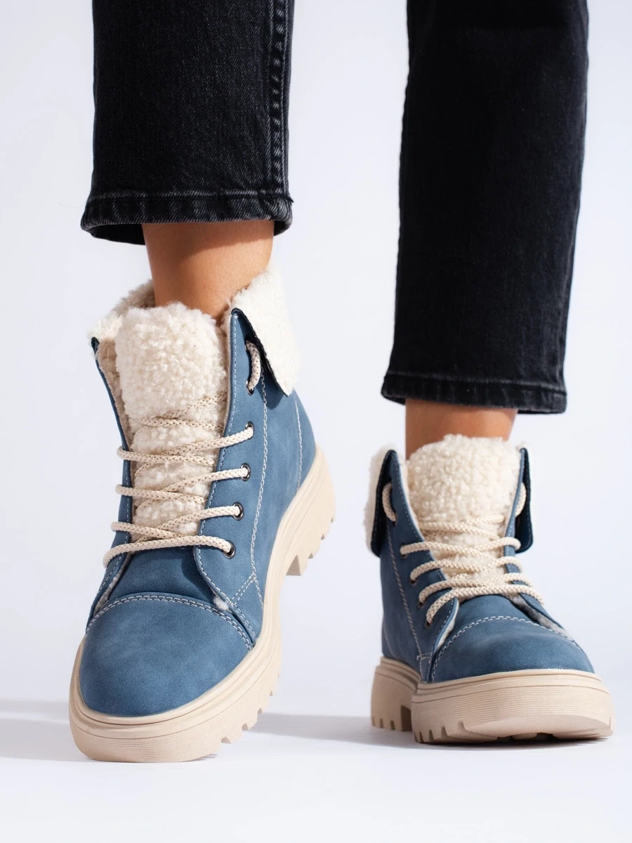 Damskie trapery z kożuszkiem w odcieniu niebieskim