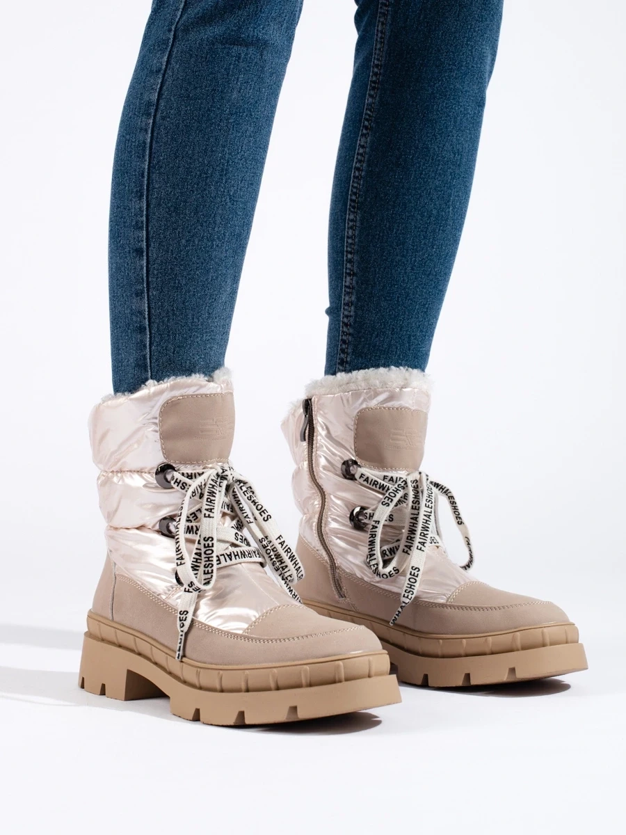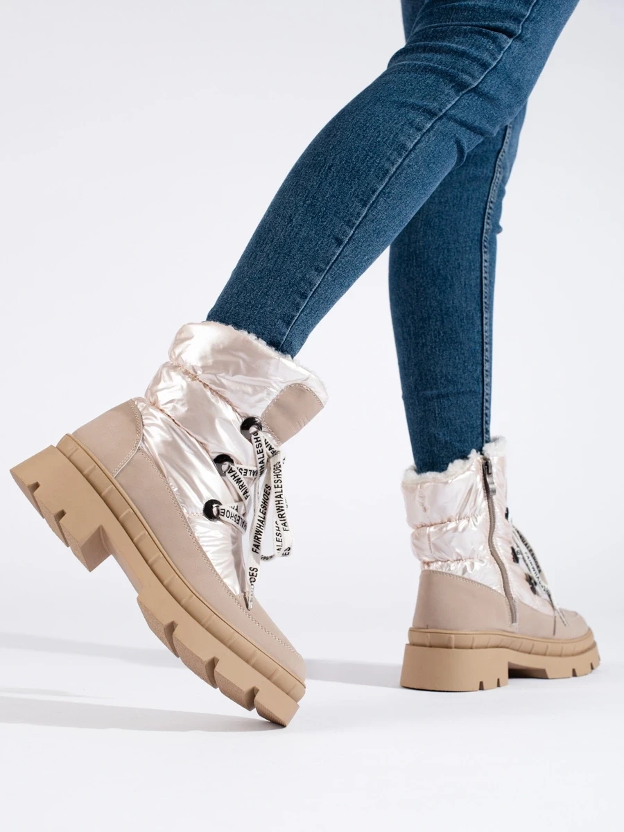 Beżowe śniegowce damskie z futerkiem - elegancja spotyka komfort