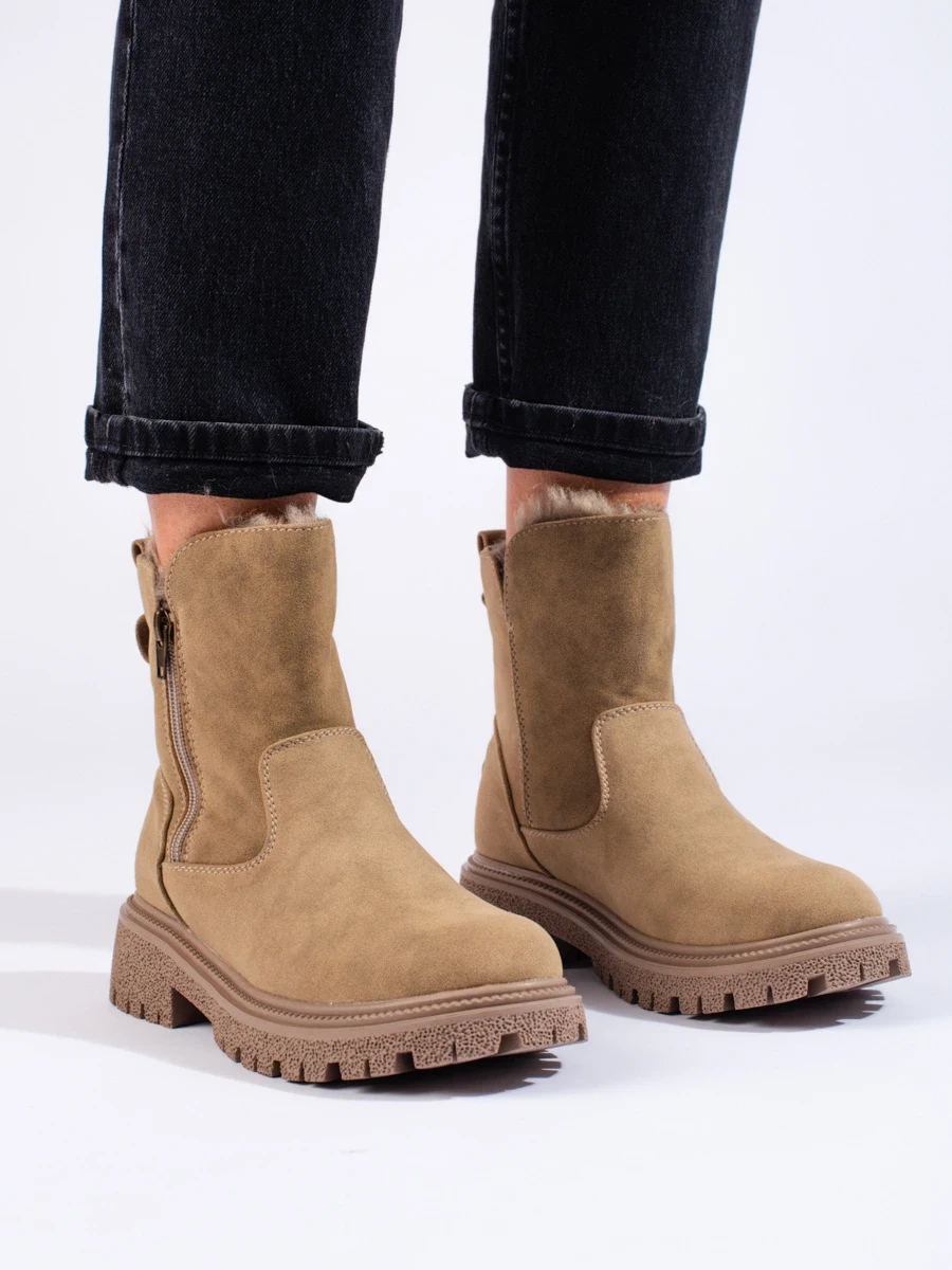 Botki damskie ocieplane – ciemnobeżowy komfort na każdą porę roku