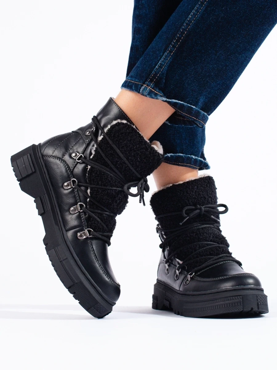 Czarne śniegowce damskie z kożuszkiem