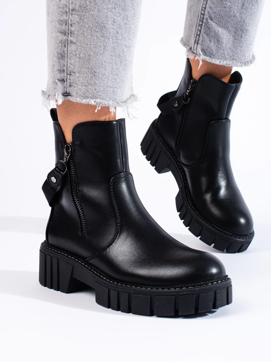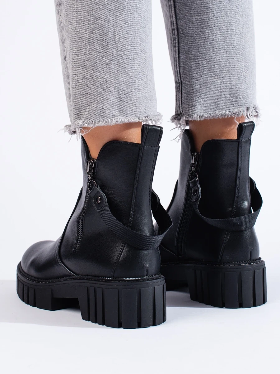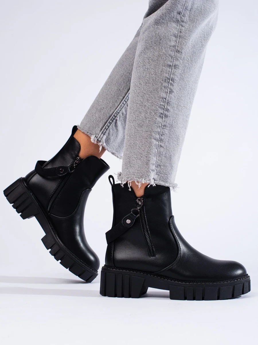 Czarne workery damskie z ozdobą Shelovet – połączenie komfortu i elegancji